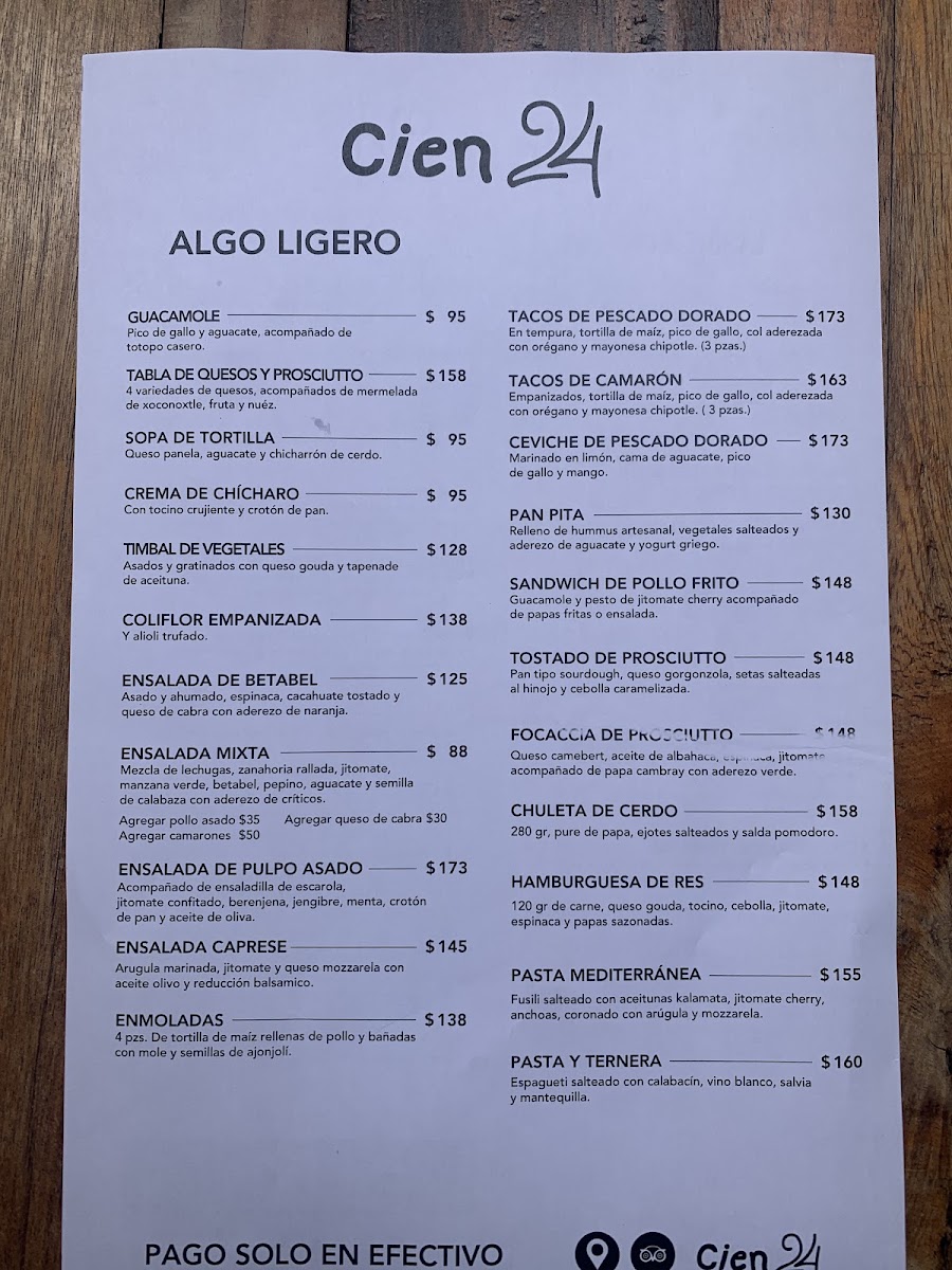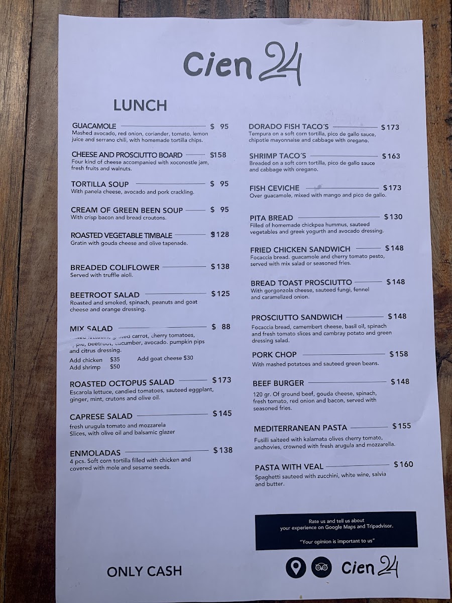 Introducing CIEN 24, a treasure nestled in the heart of San Miguel de Allende, Mexico. This charming eatery embodies a warm, homely atmosphere that invites you to relax and enjoy a delightful culinary experience.